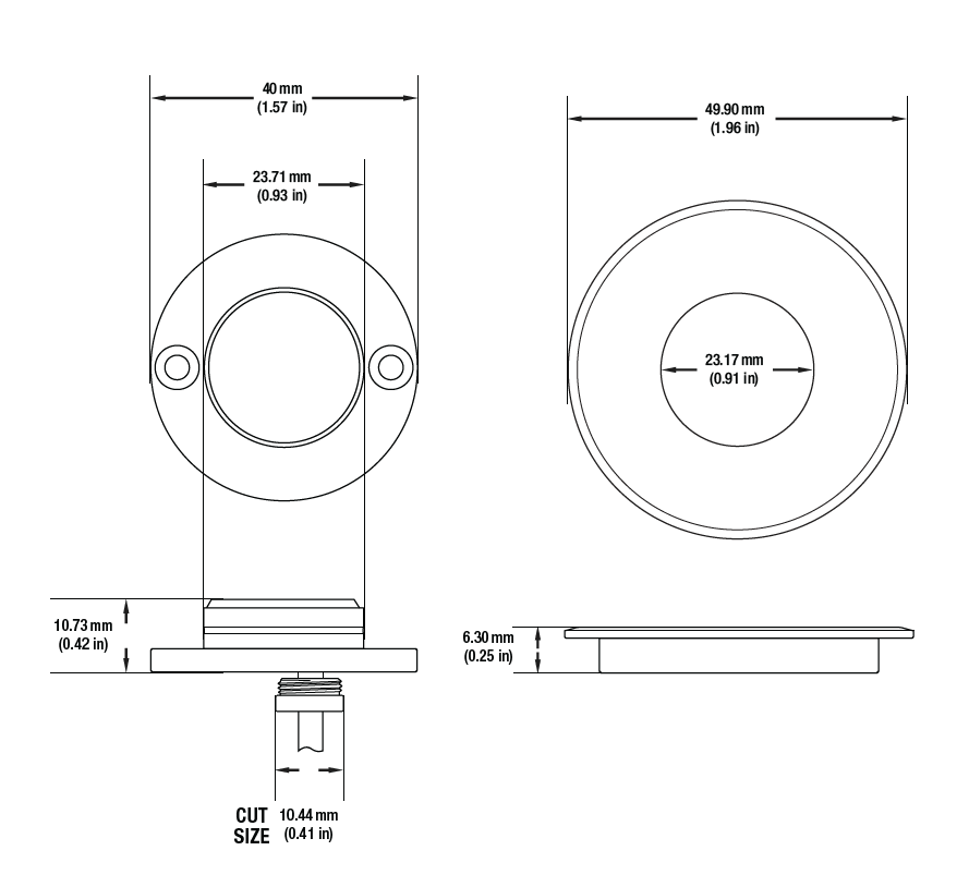 | Dimensions (Cut Size) | Ø 10.44 mm (0.41 inch) |